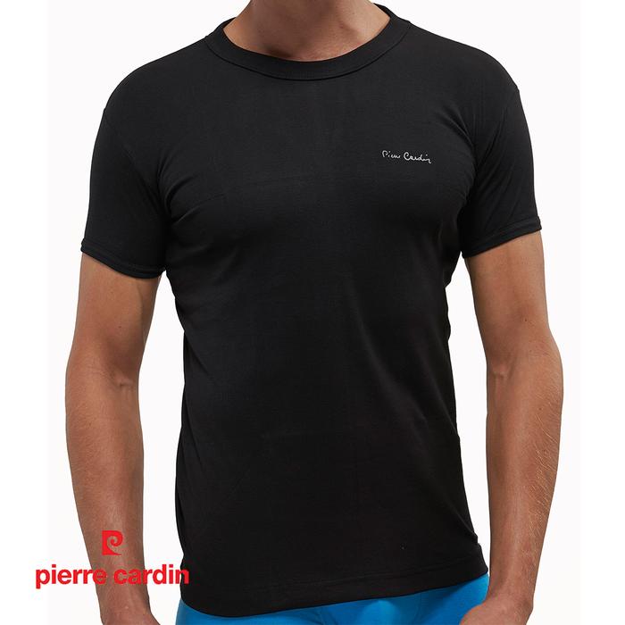 Celana Dalam Pria Dewasa Pierre Cardin Round Neck Katun Black/Hitam PC5122, Kaos dalam Oblong