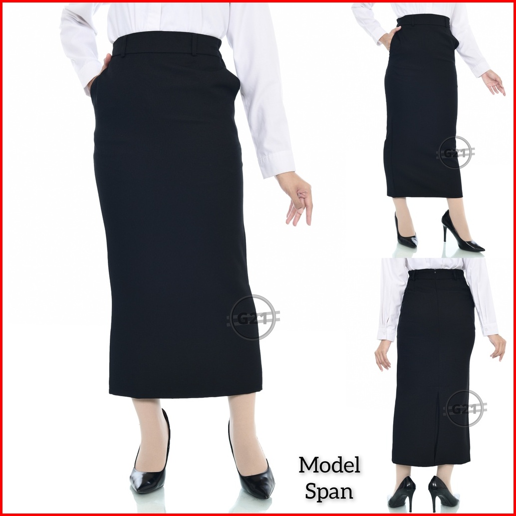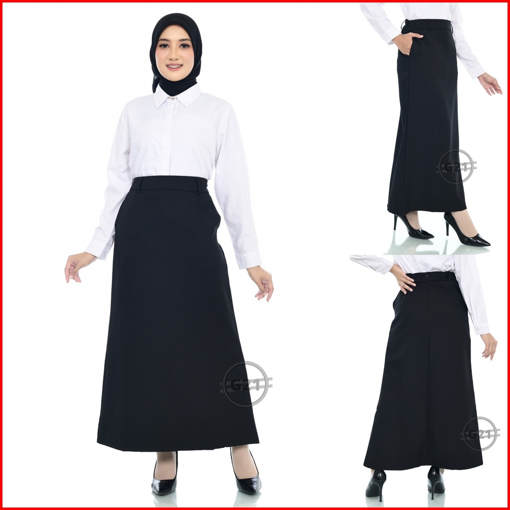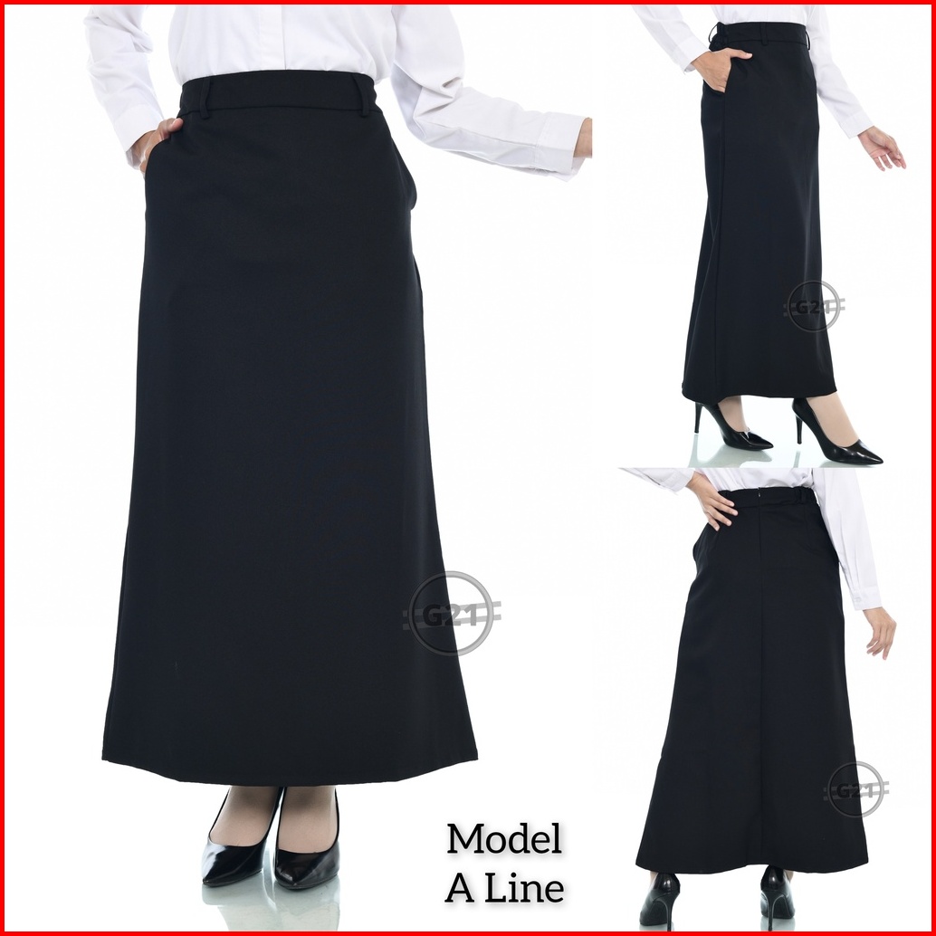 Rok Panjang Hitam Polos Model A Line Dan Span Pinggang Karet Dan Ada Kantong Saku Wanita Bahan Dasar Formal Untuk Kerja