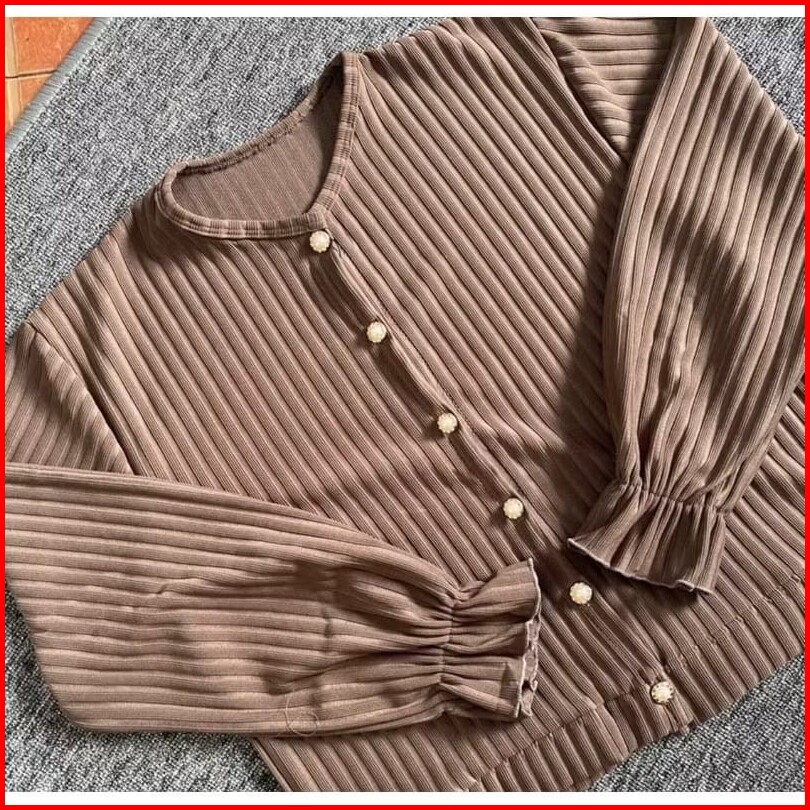 Manisfasion Id - Cardigan Hornet Puffy Knit Korean Style Cardigan Button Kancing Vintage