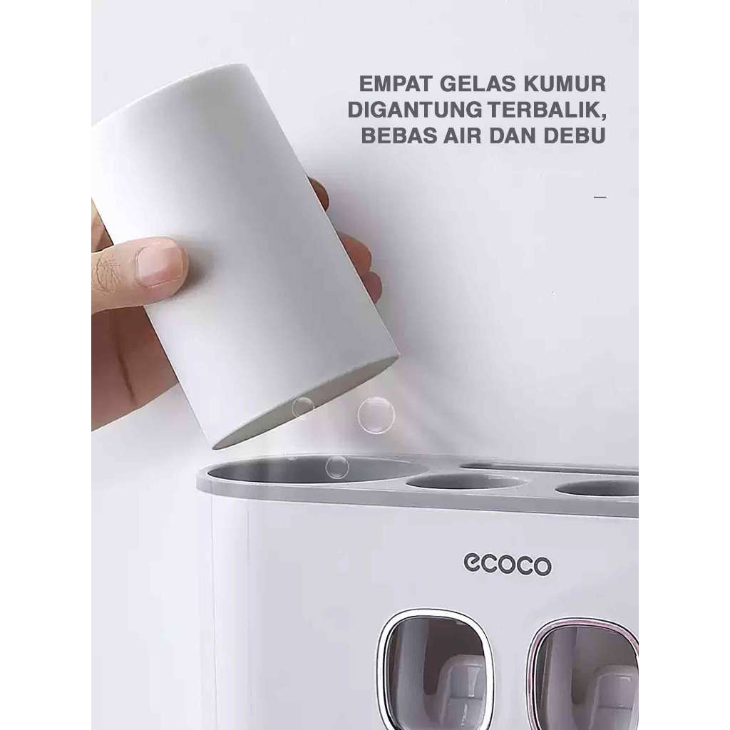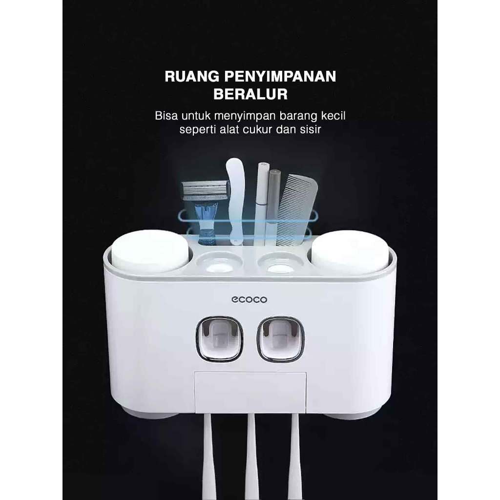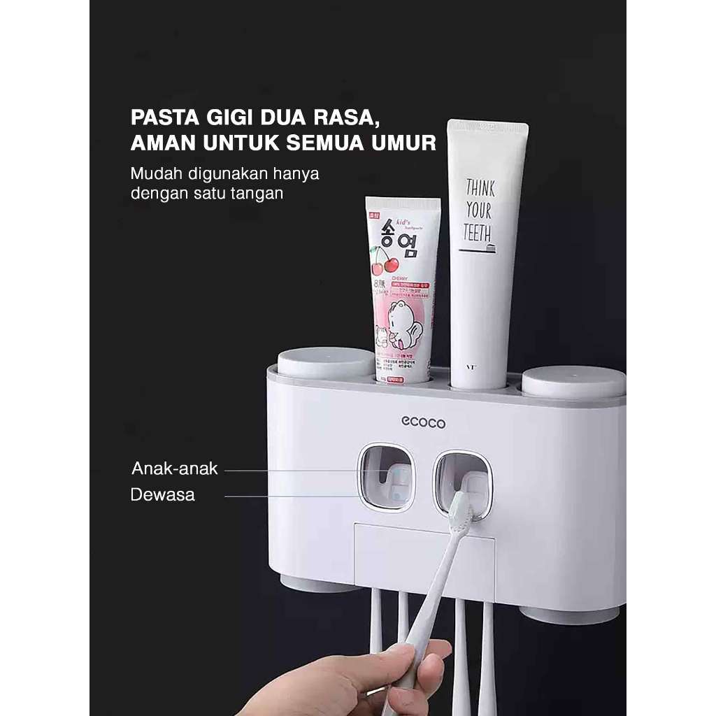 Dispenser Odol Ecoco Happy Family Set Tempat Pasta Gigi Sikat Gigi Otomatis