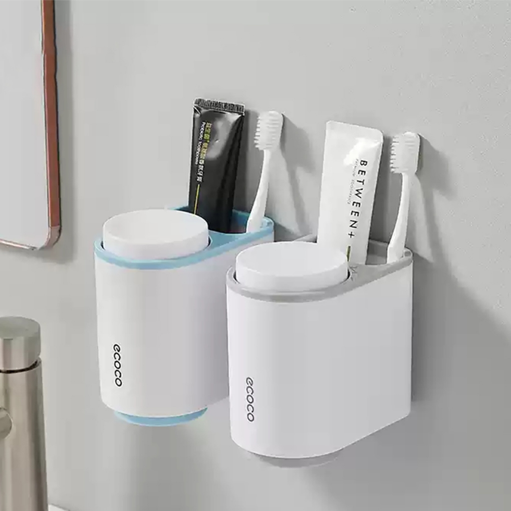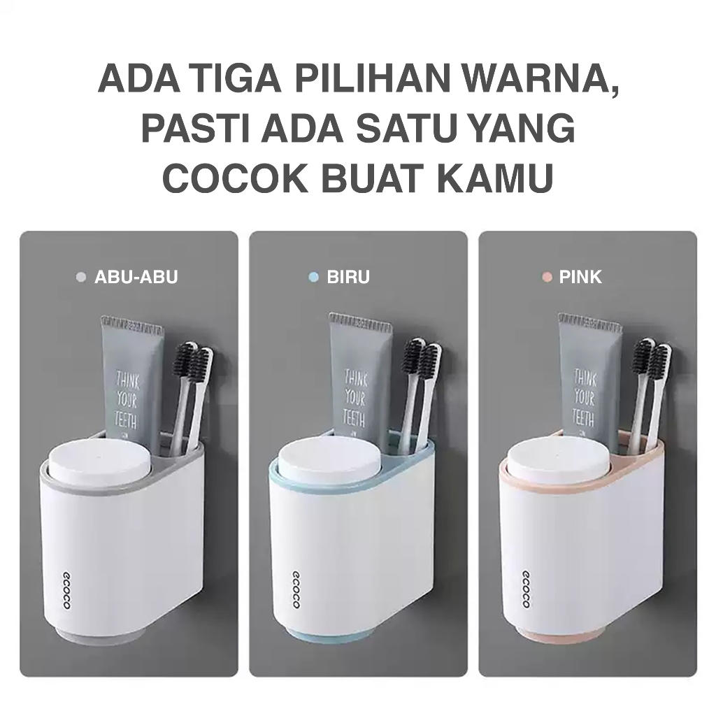 Rak Odol Ecoco Magnet Cup Set Rak Sikat Gigi Tempat Pasta Gigi Multifungsi Modern