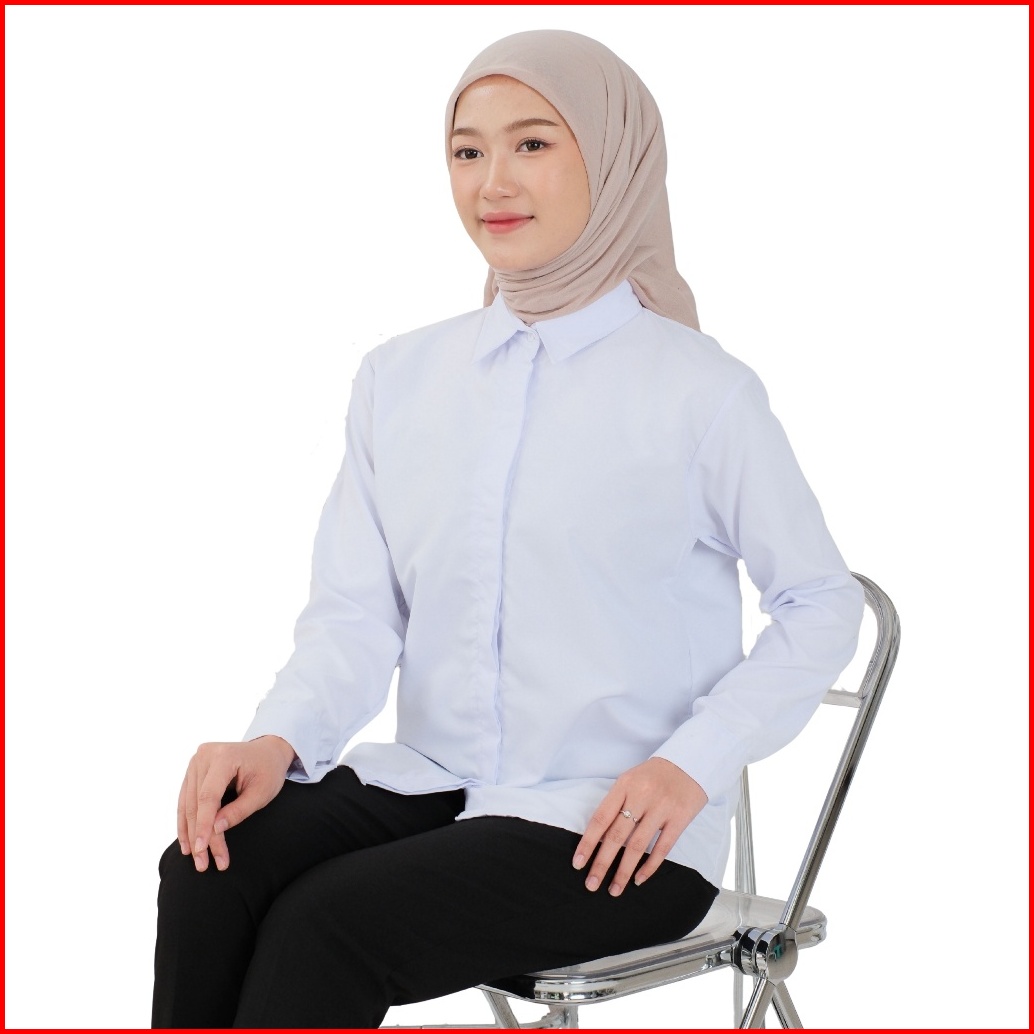 Wuskelipmen Kemeja Kerja Wanita Lengan Panjang Formal Kantor Kemeja Putih Polos Wanita