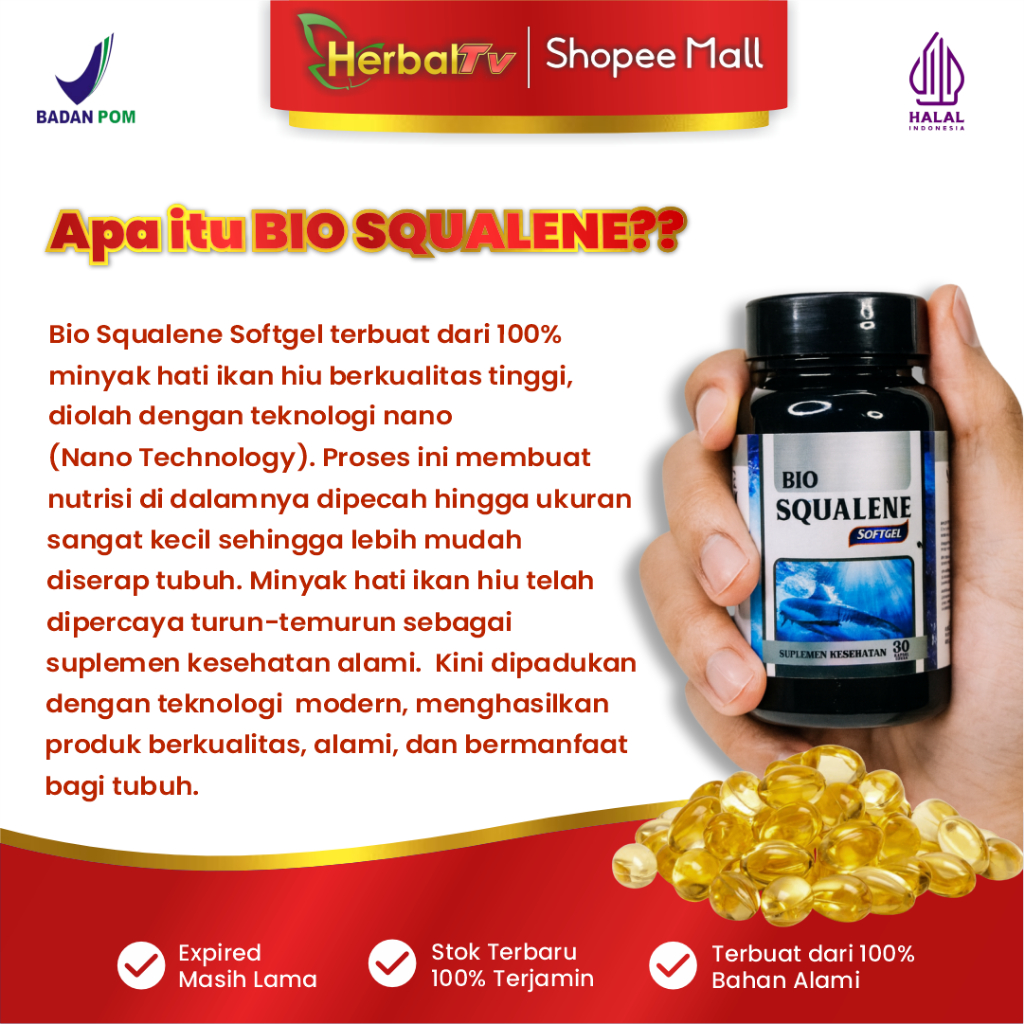 Suplemen Premium Softgel 30 Kapsul Bpom Resmi Halal Mui Kaya Omega 3 Epa Dha Vitamin A D Minyak Hati Ikan Hiu Bio Squale