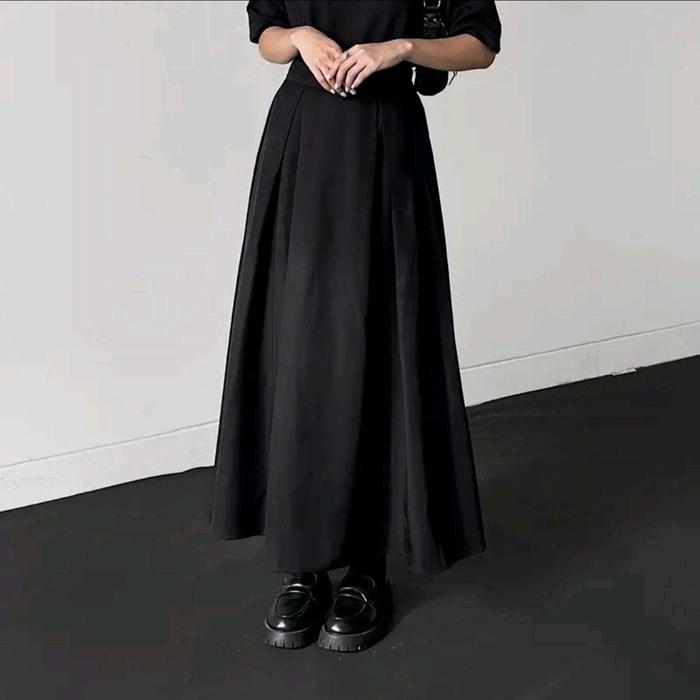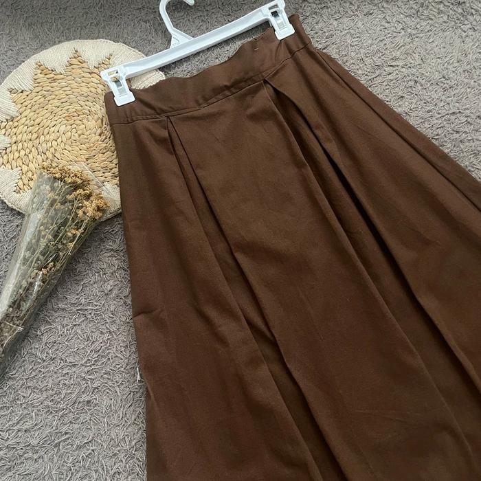Rok Lunar Flare Skirt - Rok Cotton Twil Korean Skirt Style - Rok Terbaru - Rok Cream, M-L Pjg 88Cm