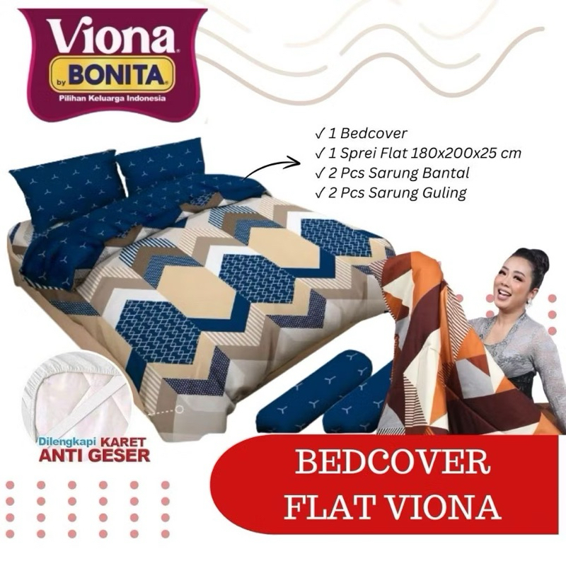 Bedcover Viona by Bonita Set Plus Sprei Flat UK.180x200 Tinggi 25cm