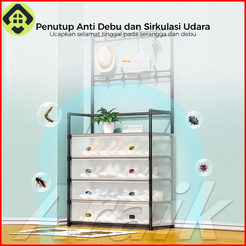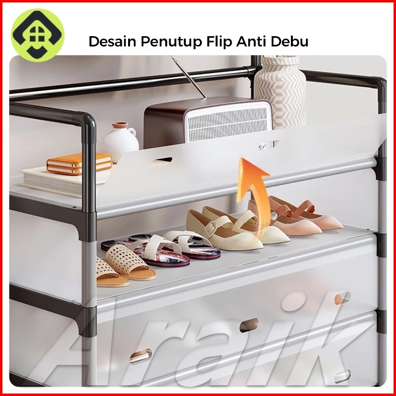 Salvo 65cm Rak Sepatu Susun Tertutup Tahan Debu Rak Sepatu Besi Kuat Tebal Kokoh Rak Tas Serbaguna Lantai 2 4 5 6 Lapis