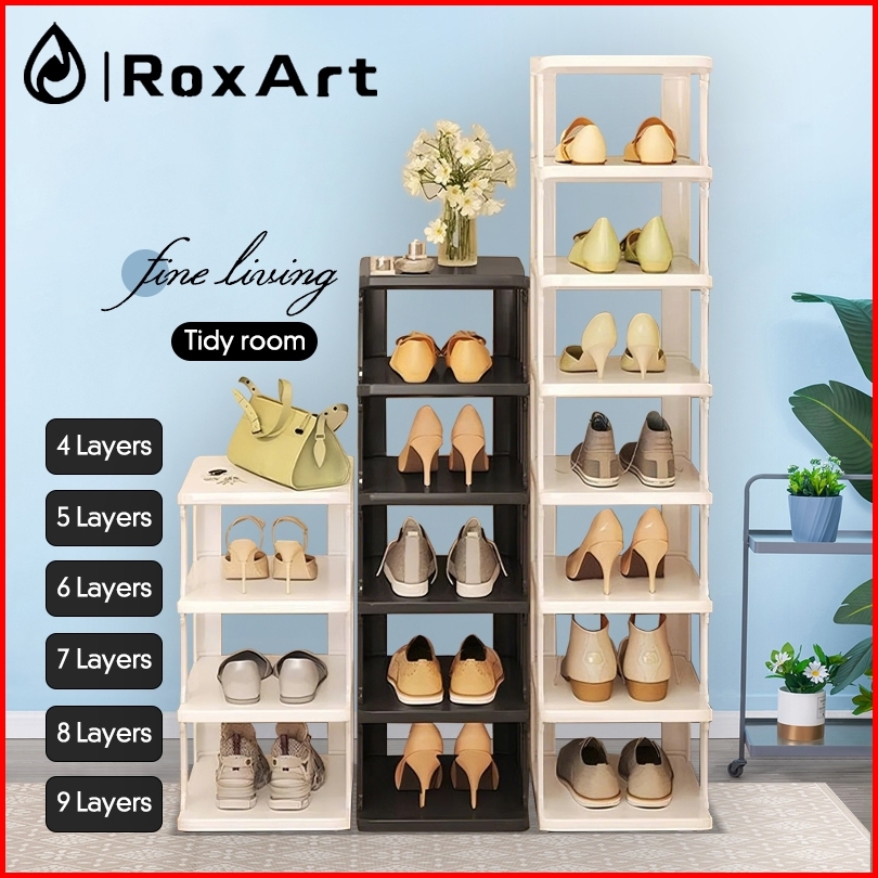 Roxart Rak Sepatu 9 Susun Plastik Rak Serbaguna Tertutup Sepatu Aesthetic Rak Sepatu Minimalis