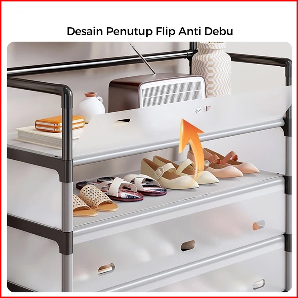 Magic Rak Sepatu Susun Plastik Tertutup Tahan Debu Rak Sepatu Besi Kuat Tebal Kokoh