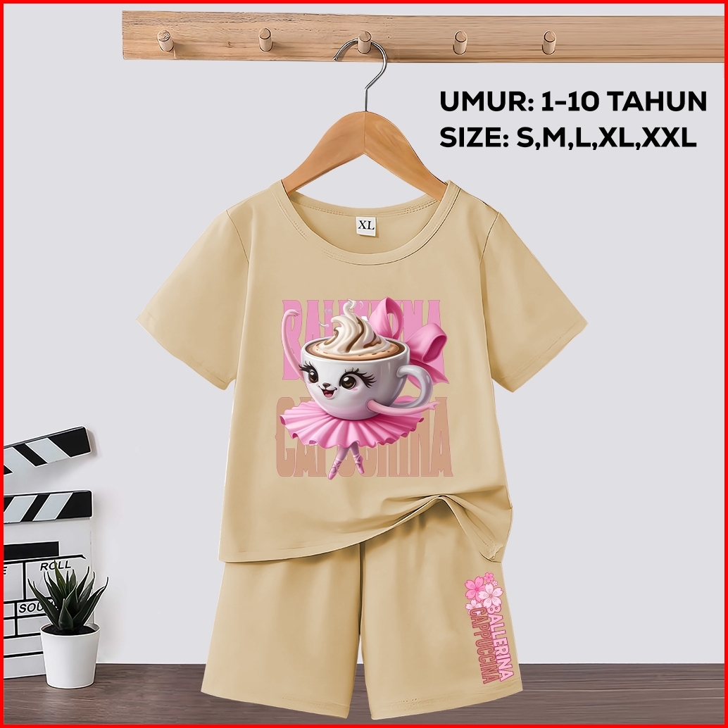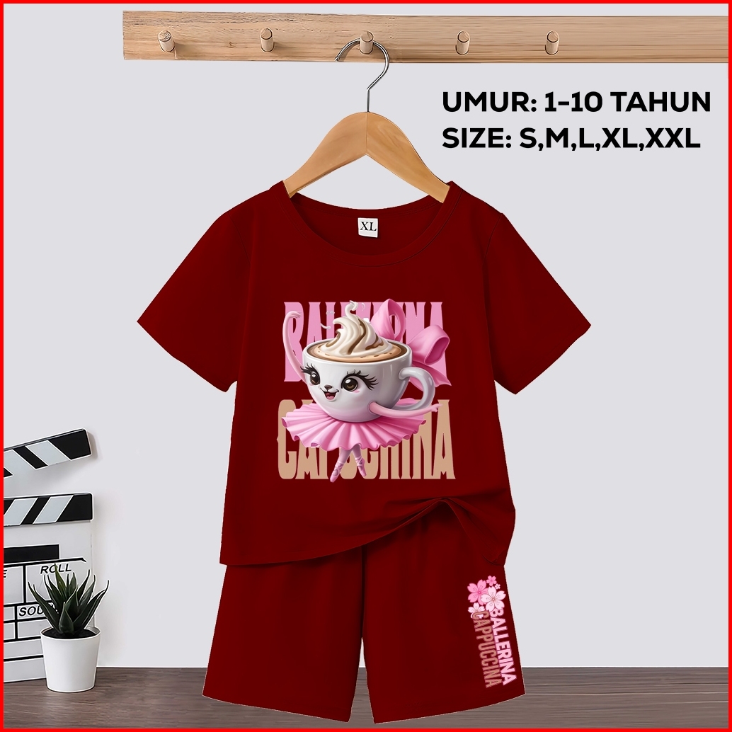 Baju Ballerina Cappuccina Anak Perempuan Umur 1-10 Tahun Lengan Pendek Set Anak Perempuan Anomali