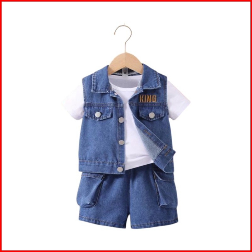 Setelan Anak Laki-laki Model Set Kemeja Vest Jeans King J67 1 - 5 Tahun