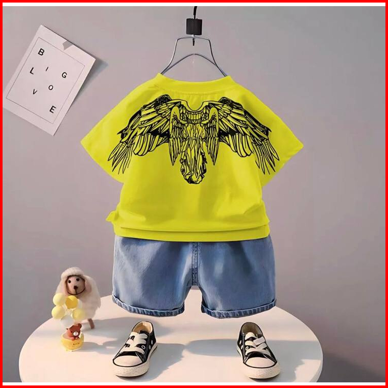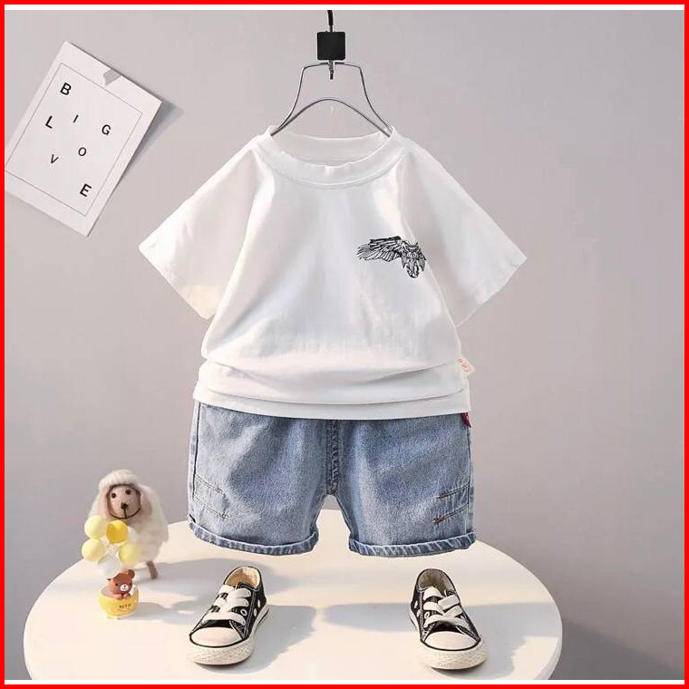 Setelan Baju Anak Laki Laki 1-5 Tahun Denim Sayap Pakaian Anak Teraru Setelan Anak Baju Dan Celana Jeans Anak Termurah P