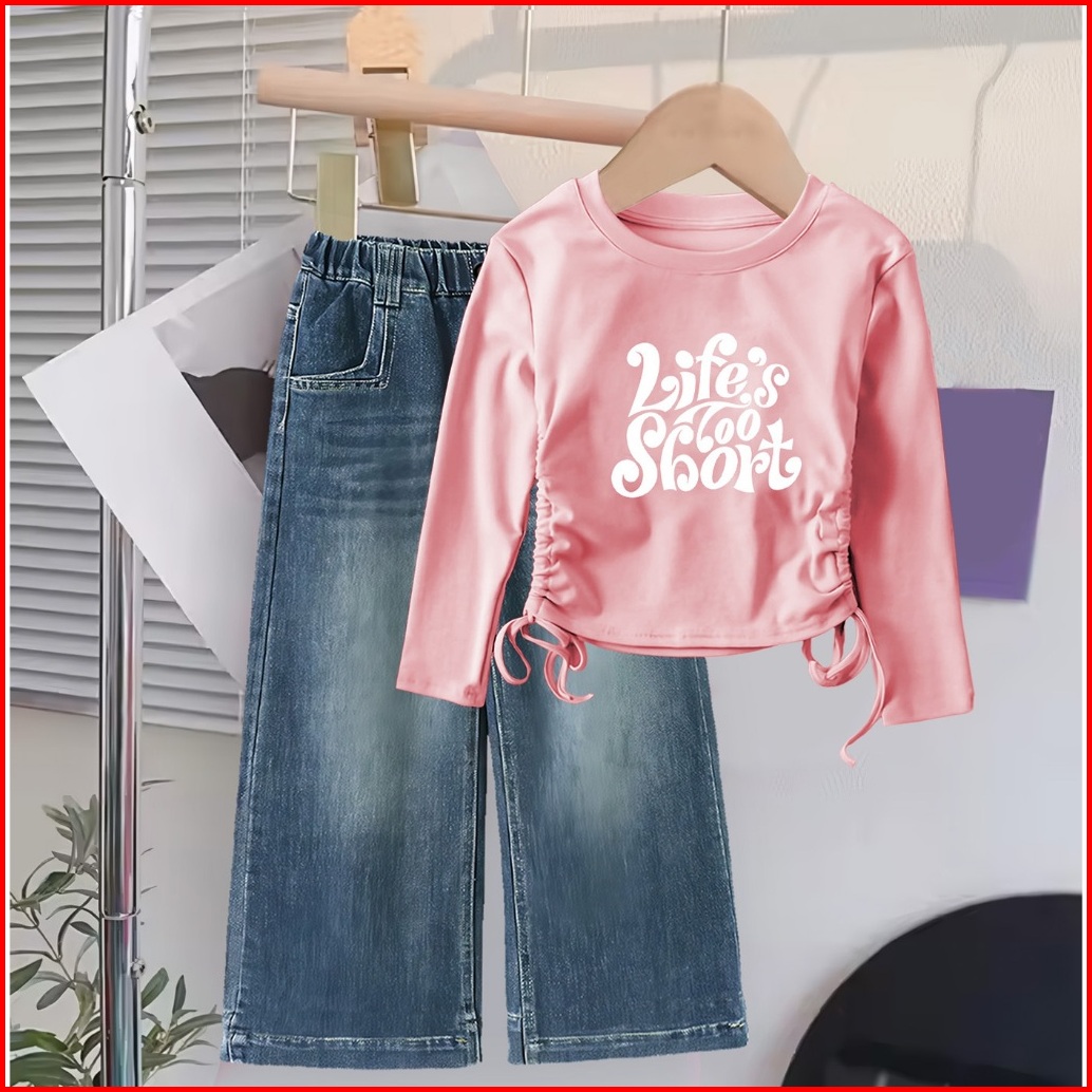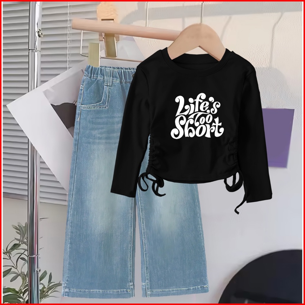 Setelan Baju Crop Panjang Celana Jeans Anak Cewek Usia 1 2 3 4 5 6 7 8 9 10 11 12 Tahun