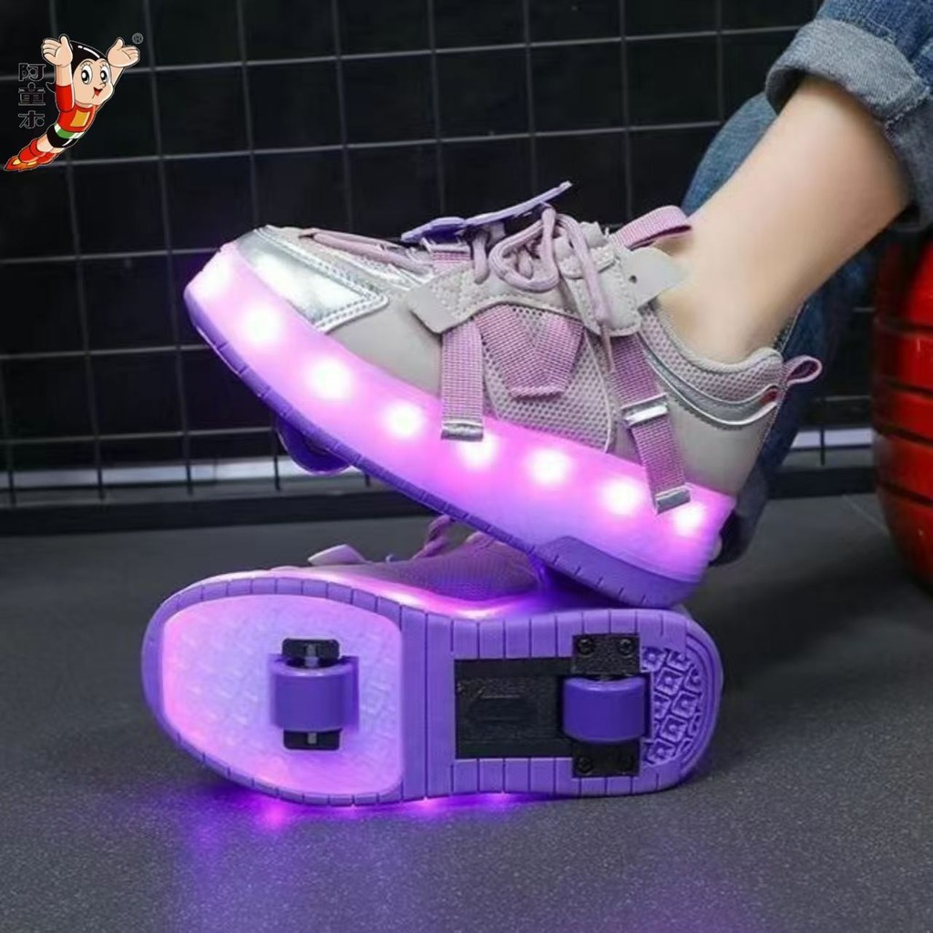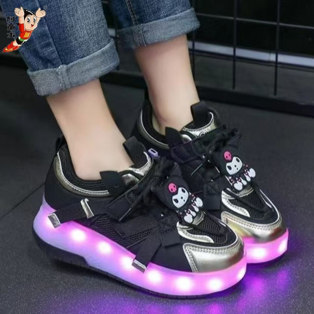 Sepatu Jalan Bersinar untuk Anak Perempuan Sepatu Roda Anak Roda Ganda Kuromi Sepatu Es