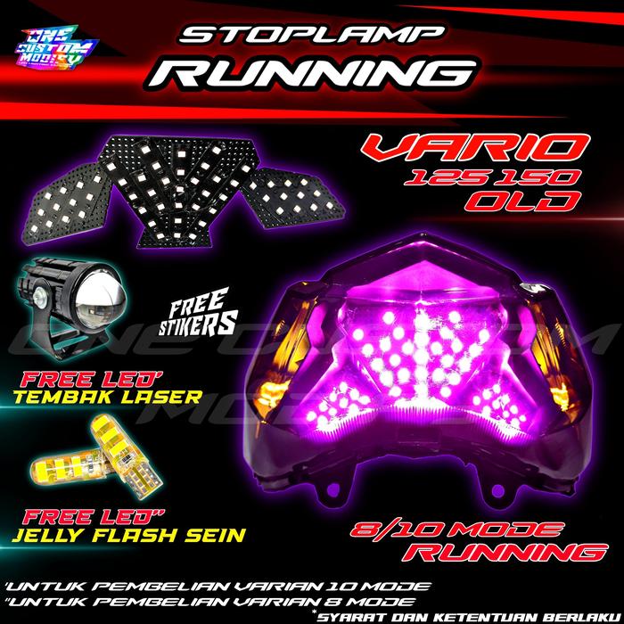 [PROMO] LAMPU LED REM RUNNING 8 & 10 MODE VARIO 125 150 BONUS LED JELLY FLASH STOPLAMP RUNNING AUTO MANUAL LAMPU BELAKANG MOTOR VARIO TAHUN 2015