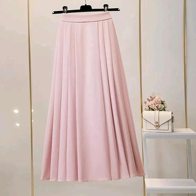 Rok Lipit Bawahan Wanita Terbaru Bahan Crinkle Premium Panjang Melar Nyaman - Hitam