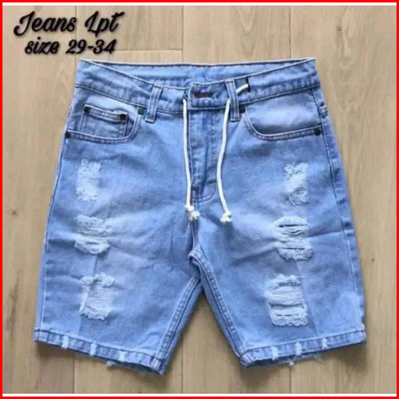 Celana Jeans Pendek Sobek Pria Wisker Jeans Pendek Ripped Robek Pria Premium