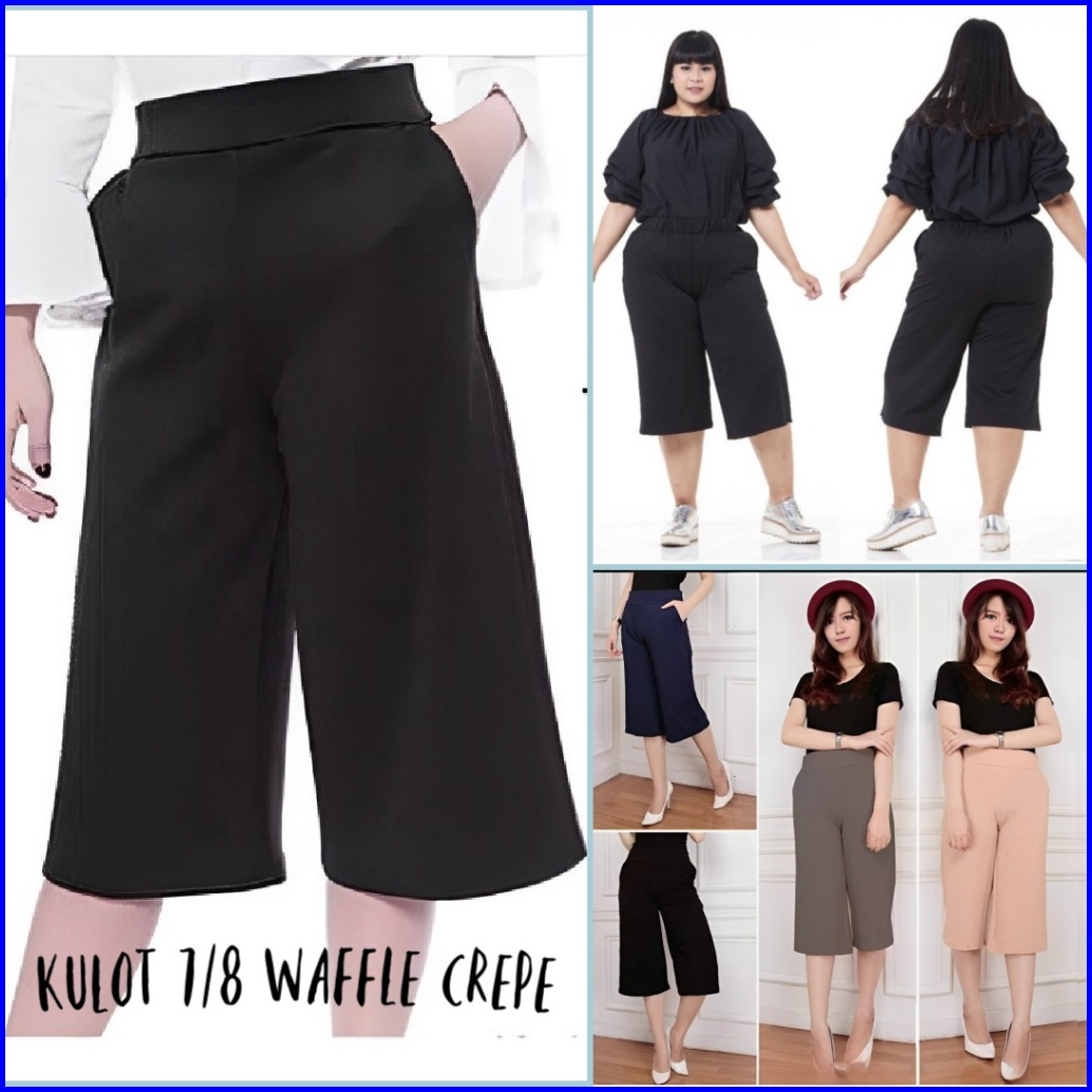Kulot Pendek Wanita 7 8 Waffle Ukuran Setandar Dan Jumbo Celana Kulot 7 8 Bahan Waffle Crepe Premium