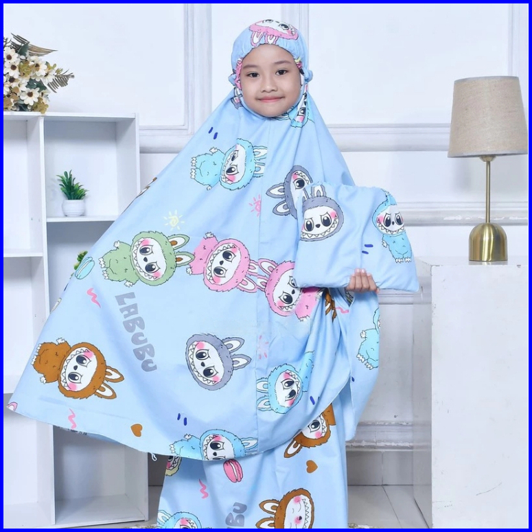 Mukenah Anak Labubu Lengkap Tas Umur 6-11 Tahun
