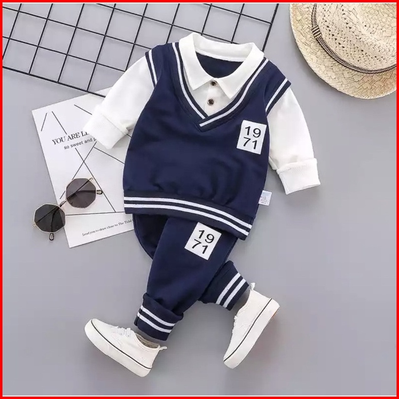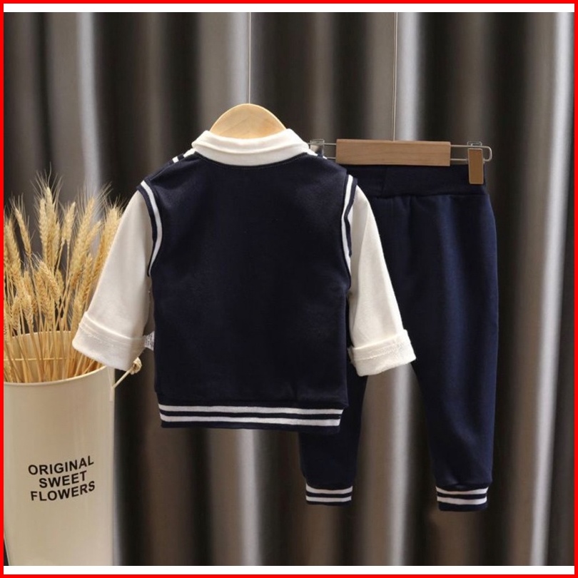 Setelan Baju Rompi Kerah Panjang Pakaian Modis Anak Set Baju Dan Celana Panjang Anak Laki Laki 1-5tahun