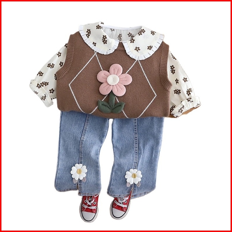 Futurestar Setelan Anak Perempuan Baru Setelan Jeans Atasan Rajut Lengan Panjang Gaya Korea