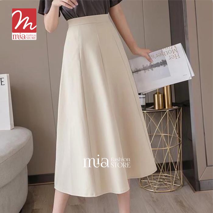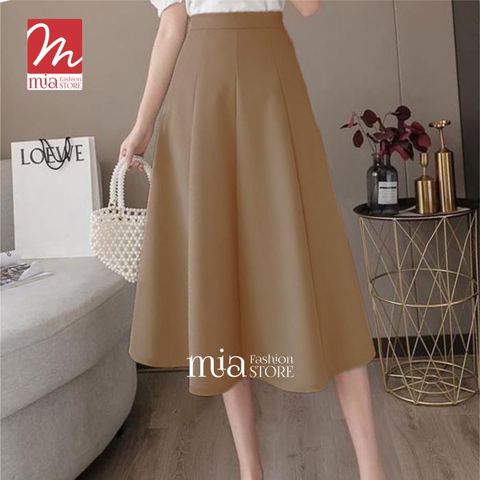 Mia Fashion.Id Audy Skirt Midi Highwaist Rok Flare 7/8 Jumbo Rok Kerja Highwaist Wanita Kekinian Model Terbaru - Hitam,