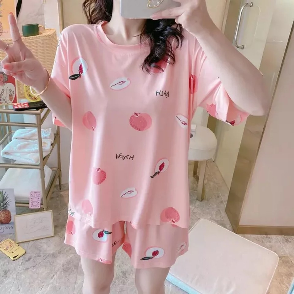 HUES.ID Pakaian Wanita Baju Tidur Wanita Piyama Lengan Pendek Import Motif Kartun Fit to L 4019