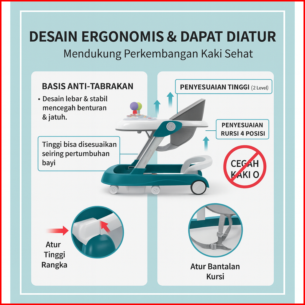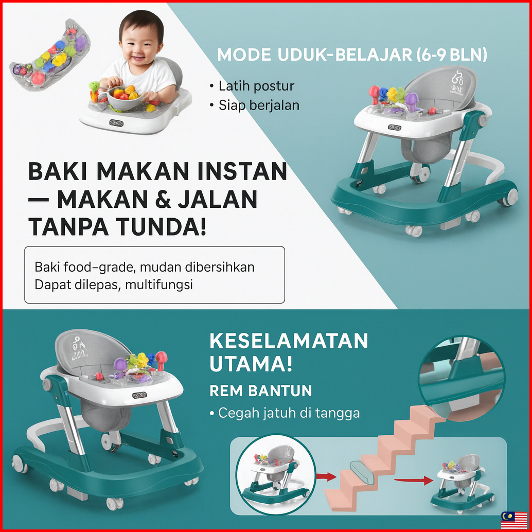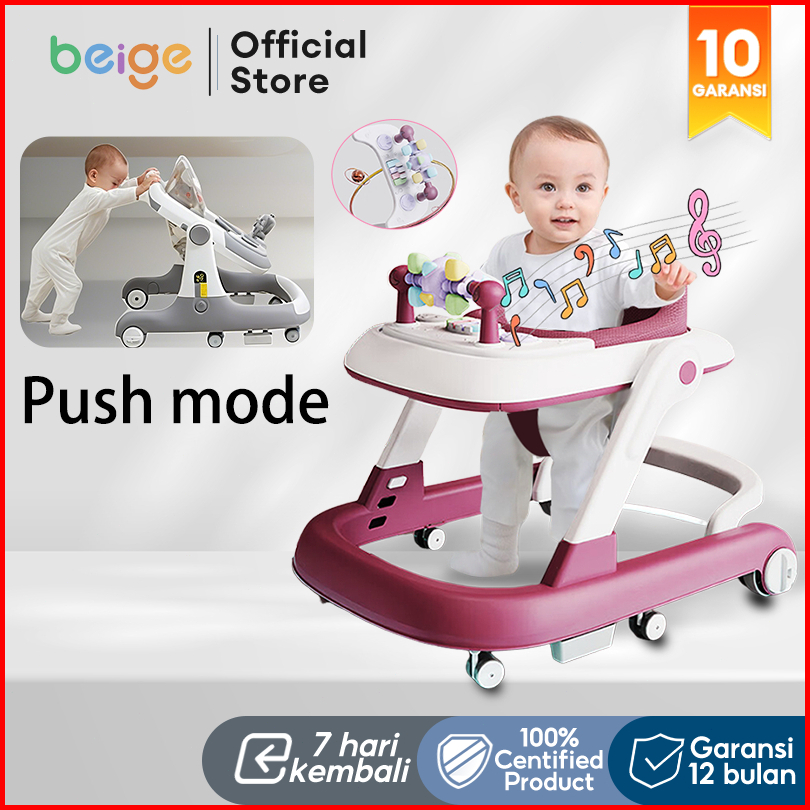 Beige Baby Walker Bayi Multifungsi Lipat Mainan Musik 5 In 1 Beban 30kg