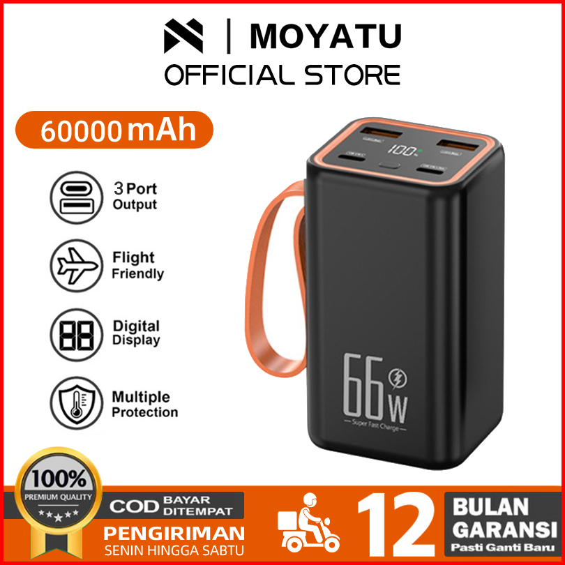 Moyatu 60000mah 66w Super Fast Charging Power Bank Led Display Powerbank 3 Output Port Usb