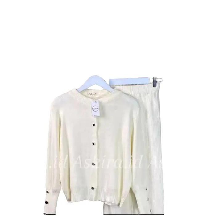 One Set Starla Cardigan Rajut Dan Rok Rajut Span Premium - Emeral, Allsize
