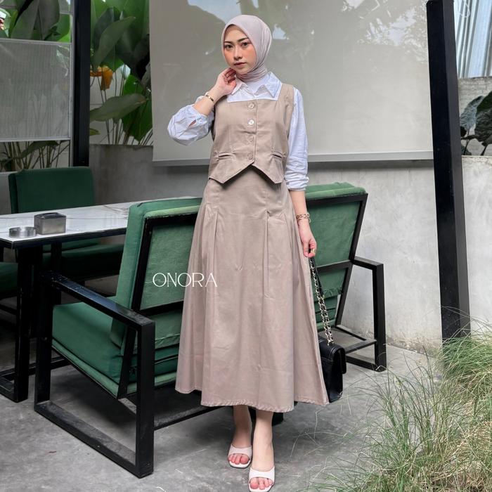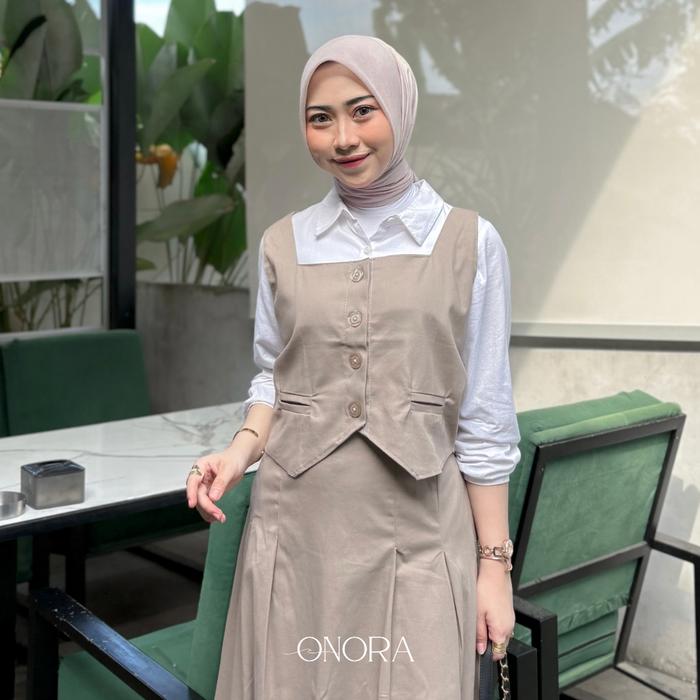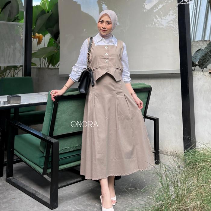 Zella Oneset Setelan Wanita | Rok Bawahan Wanita Korean Style Bahan Katun Twill - Zella Black, Standar