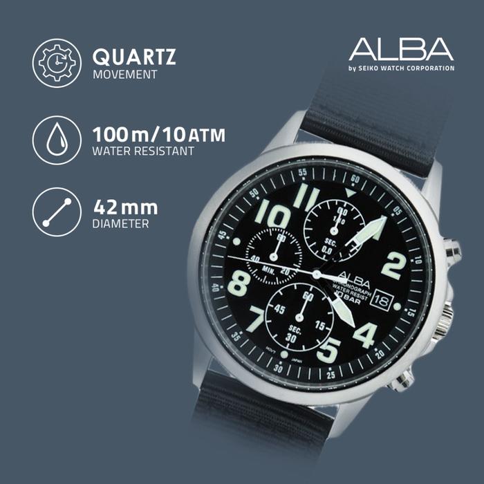 Promo Jam Tangan Wanita Alba Jam Tangan Pria Pilot Chronograph AM3853 / AM3853X1 Quartz Black Dial