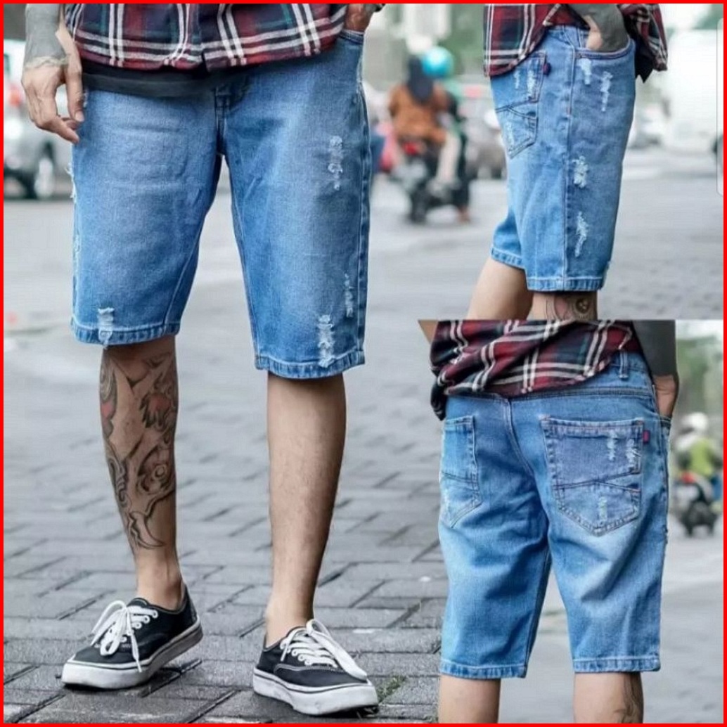 Celana Pendek Jeans Sobek Pria Dewasa Celana Sobek Distro Non Streach Casual Reguler Denim Vintage