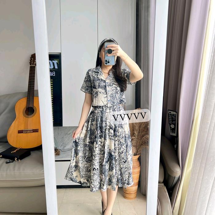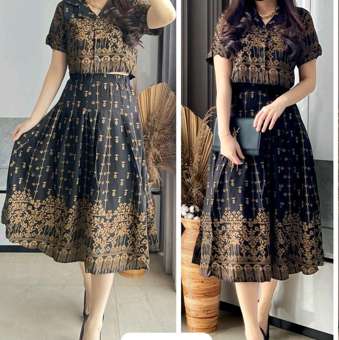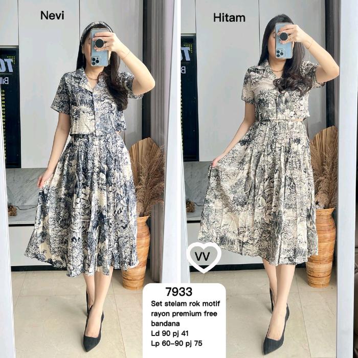 Set Stelan Rok Motif 7933 Mv Import Fit Wanita Katun Rayon Setelan Formal - Hitam