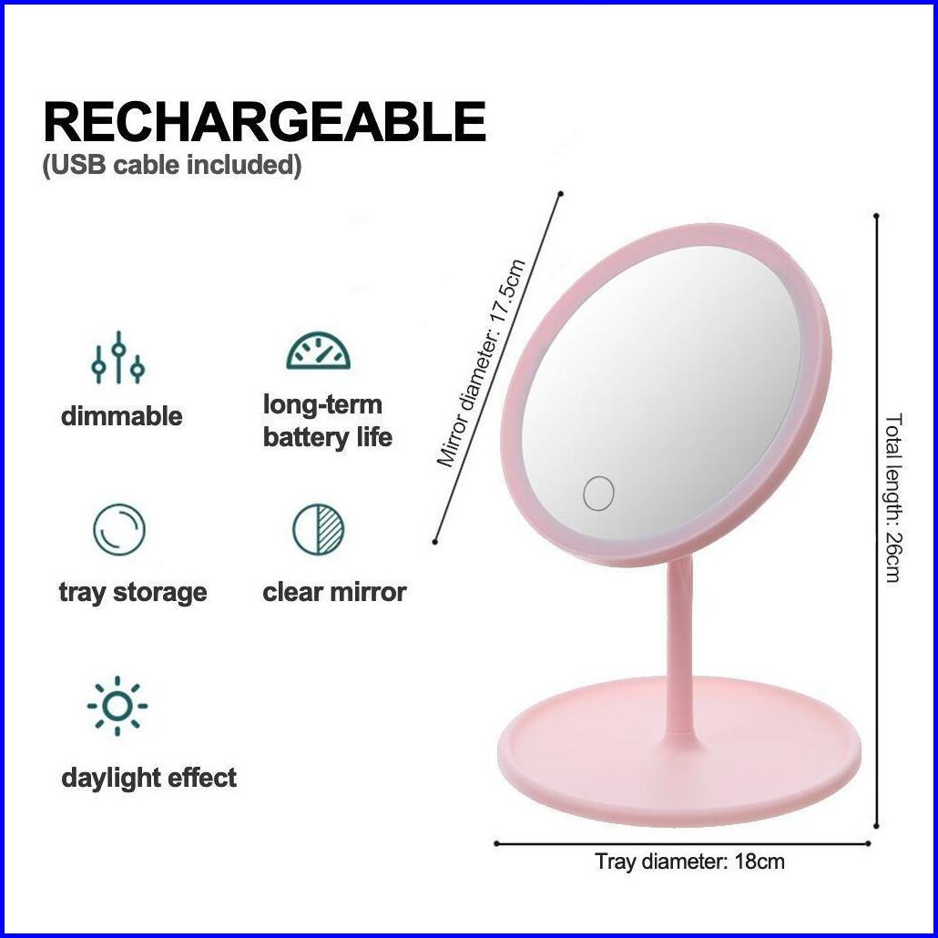 Kadula Cermin Make Up Meja Dengan Lampu Led Touchscreen Rotasi 90 Derajat