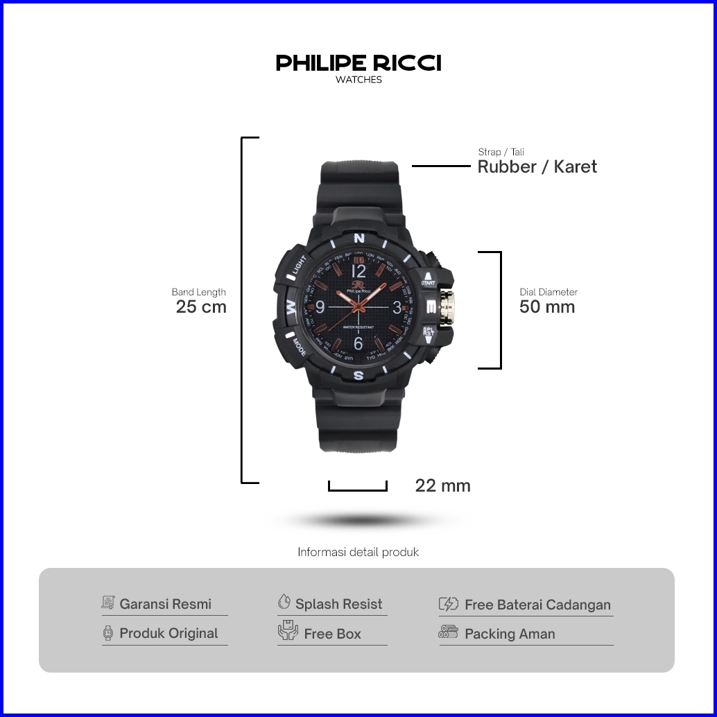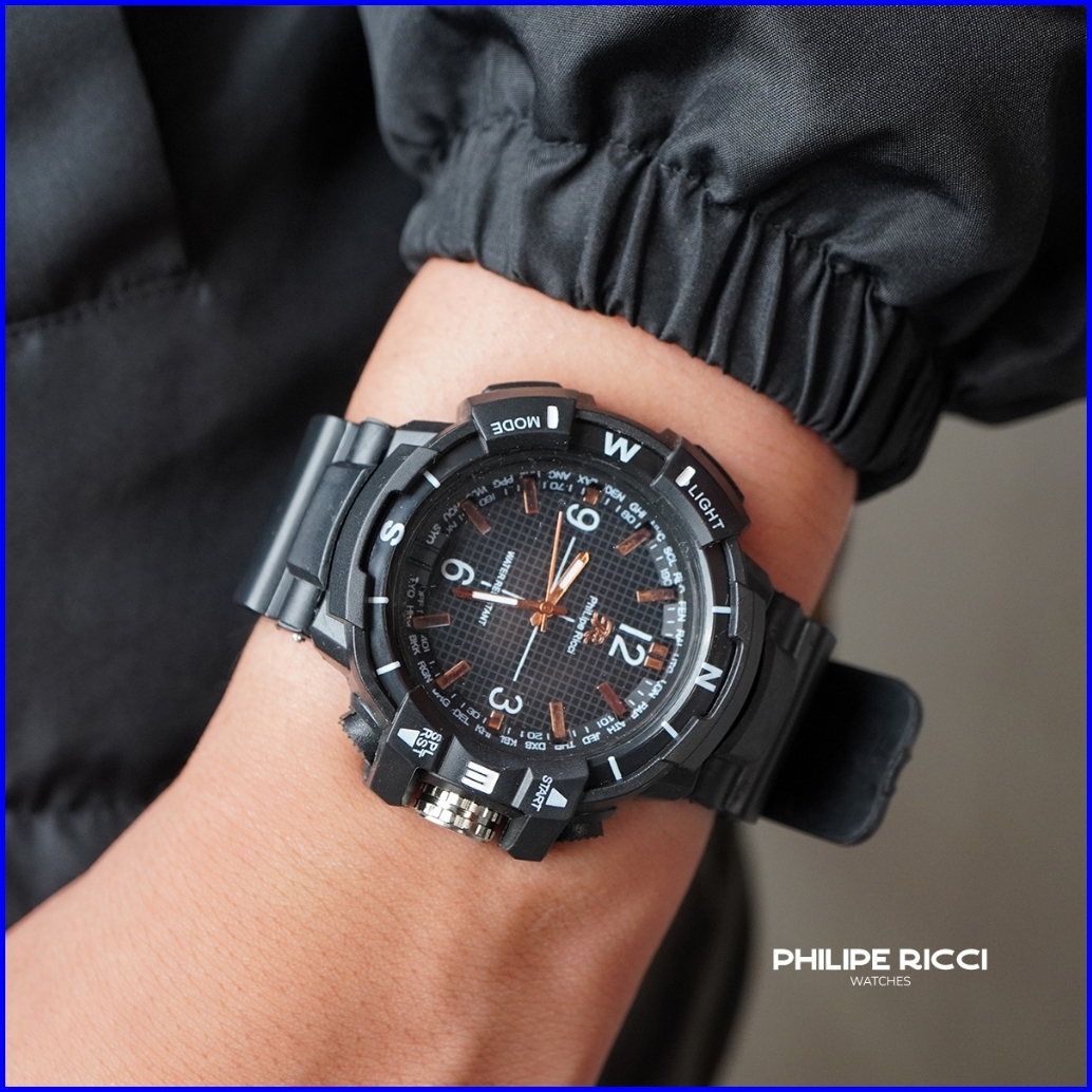 Philipe Ricci Jam Tangan Pria Karet Hitam Sporty Terbaru 100 Original Simple Keren 329s Men Watches