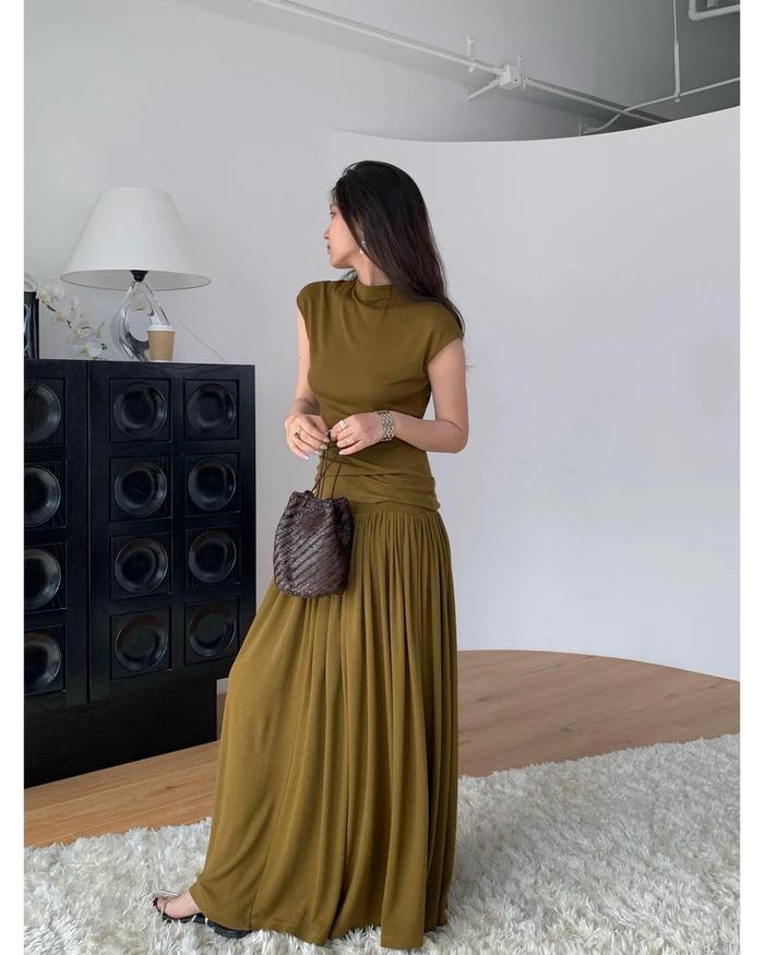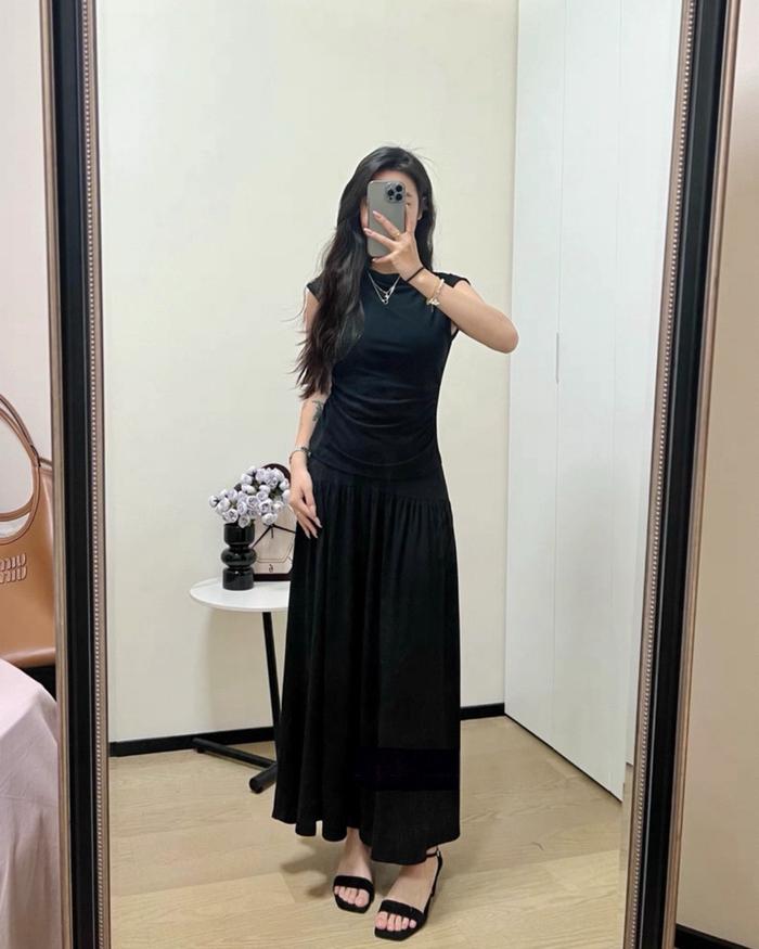 Mille Set Stretch Top With Maxi Skirt / Setelan Nyaman Modis Kaos Atasan Rok Set7556 - Black