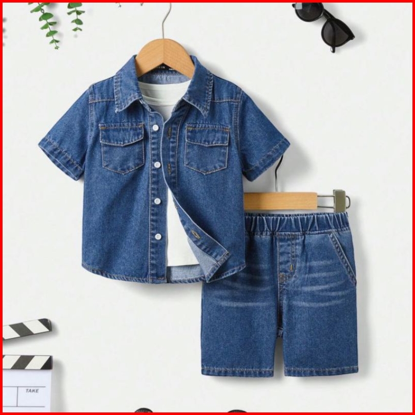 Setelan Anak Laki-laki Model Set Kemeja Jeans J65 1 - 5 Tahun