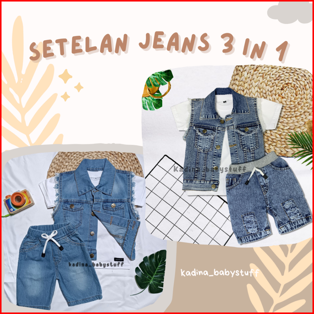 Setelan Jeans Anak Laki-laki Celana Pendek Anak Rompi Jeans Anak Usia 1-8 Tahun