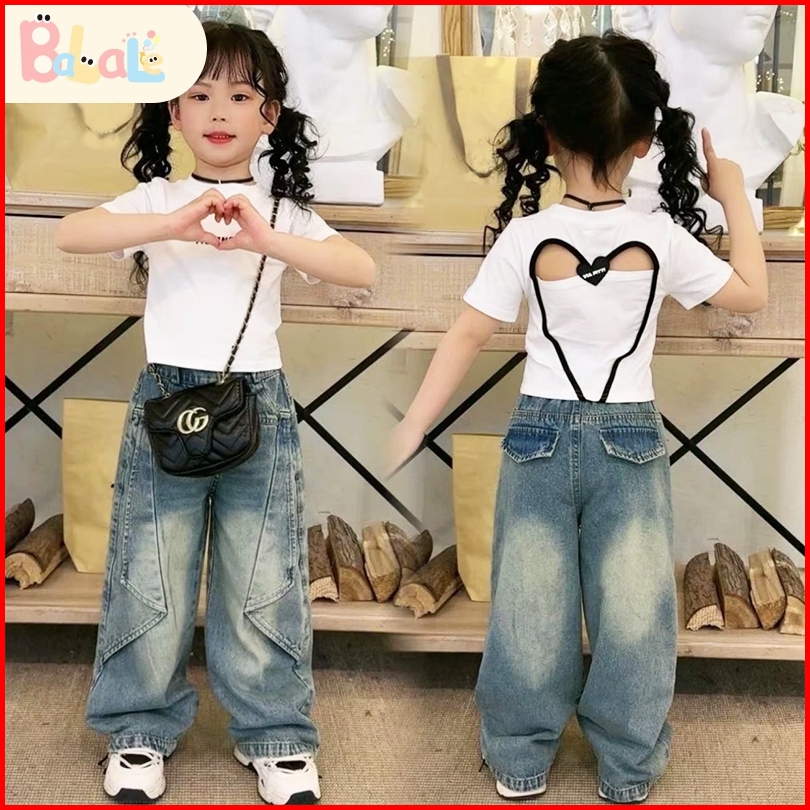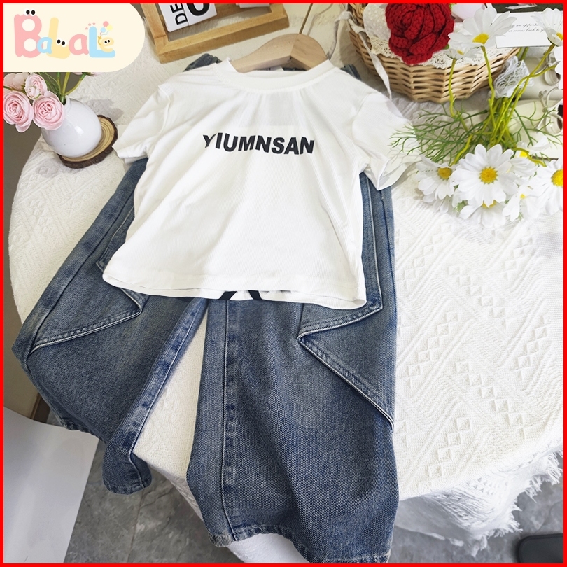 Fashion Setelan Anak Perempuan Terbaru 2025 Jeans Girls Denim Set Baju Sehari-hari Casual Cewek