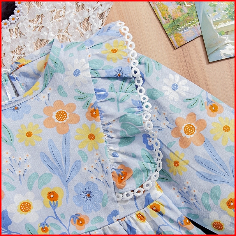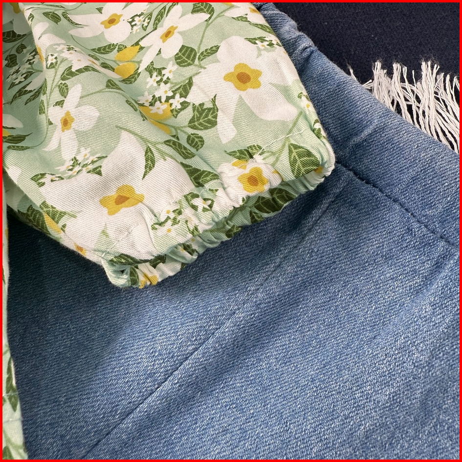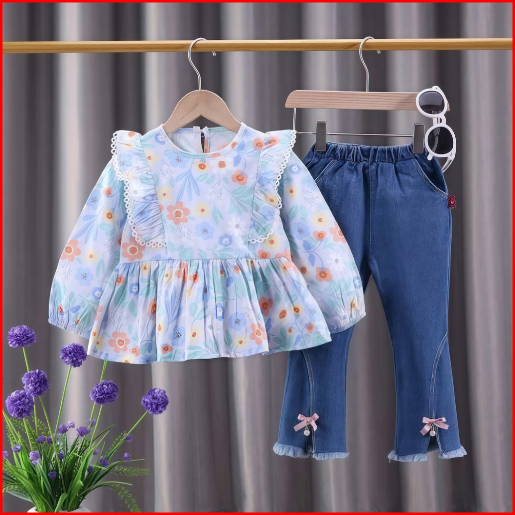 Rainbow Setelan Anak Perempuan Lengan Panjang Motif Bunga Bahan Jeans Motif Katun Premium Baju Anak