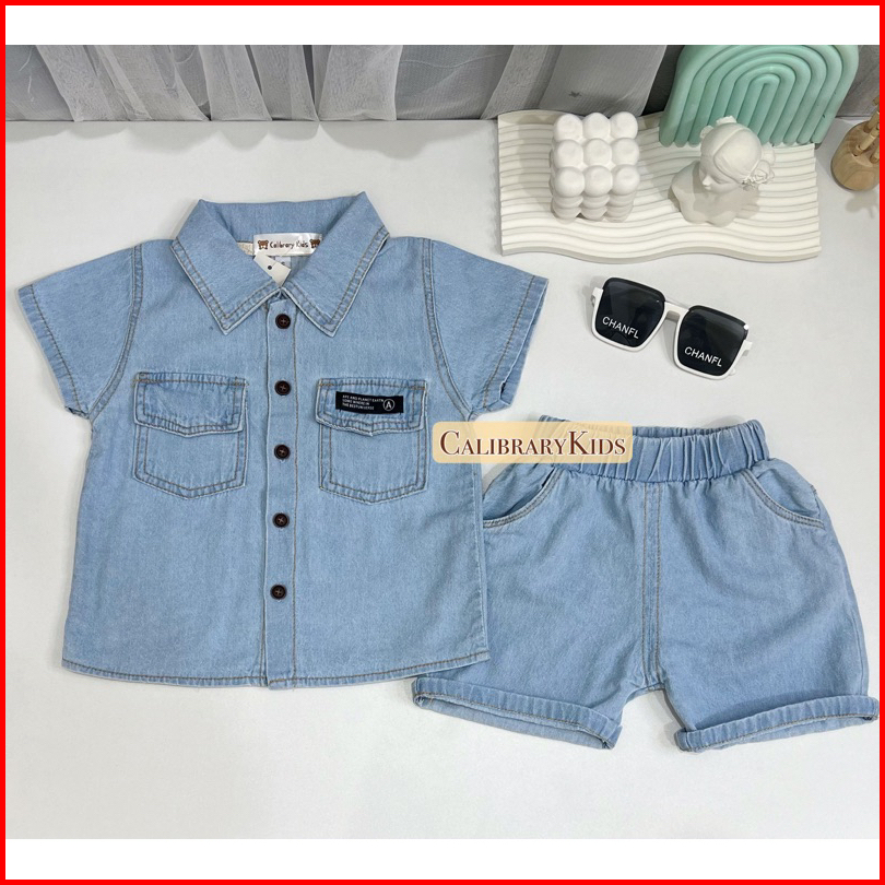 Calibrary Kids Setelan Jeans Anak Cowok 1-5tahun The Bestuniverse Set Kemeja Jeans Anak Laki Laki Fashion Anak