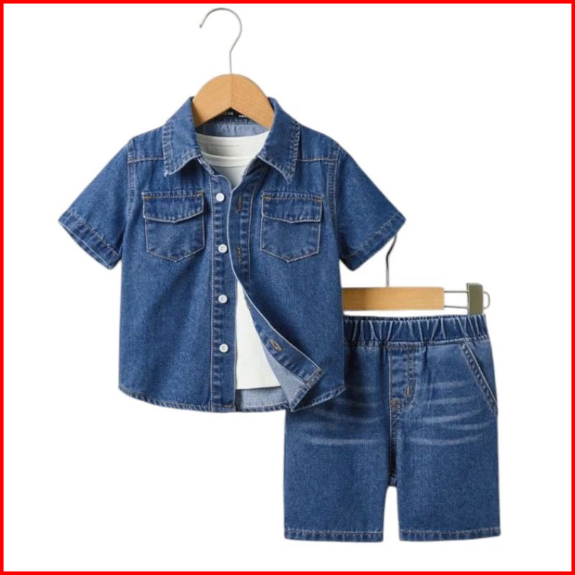 Setelan Anak Laki-laki Model Set Kemeja Jeans 1 - 5 Tahun