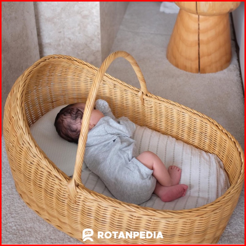 Keranjang Rotan Tempat Tidur Bayi Dengan Bantal Baby Property Rotan