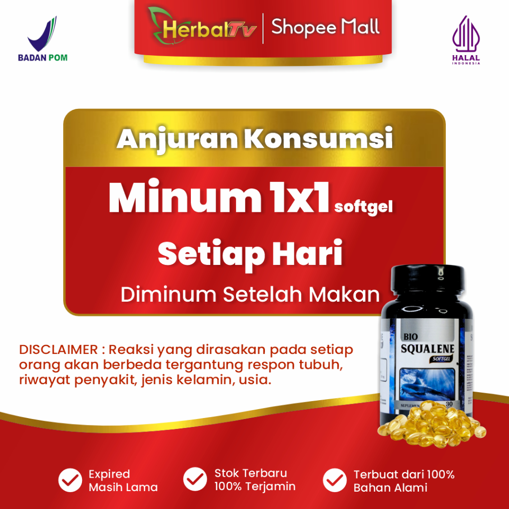 Bio Squalene Softgel 30 Kapsul Bpom Resmi Halal Mui Suplemen Premium Omega 3 Epa Dha Vitamin A D Minyak Hati Ikan Hiu As