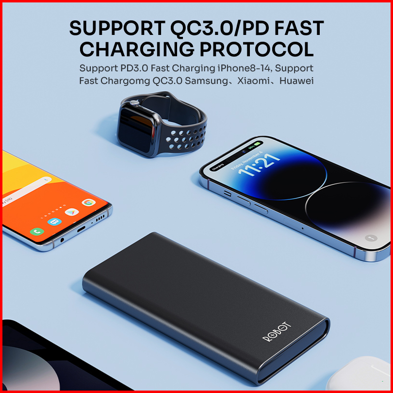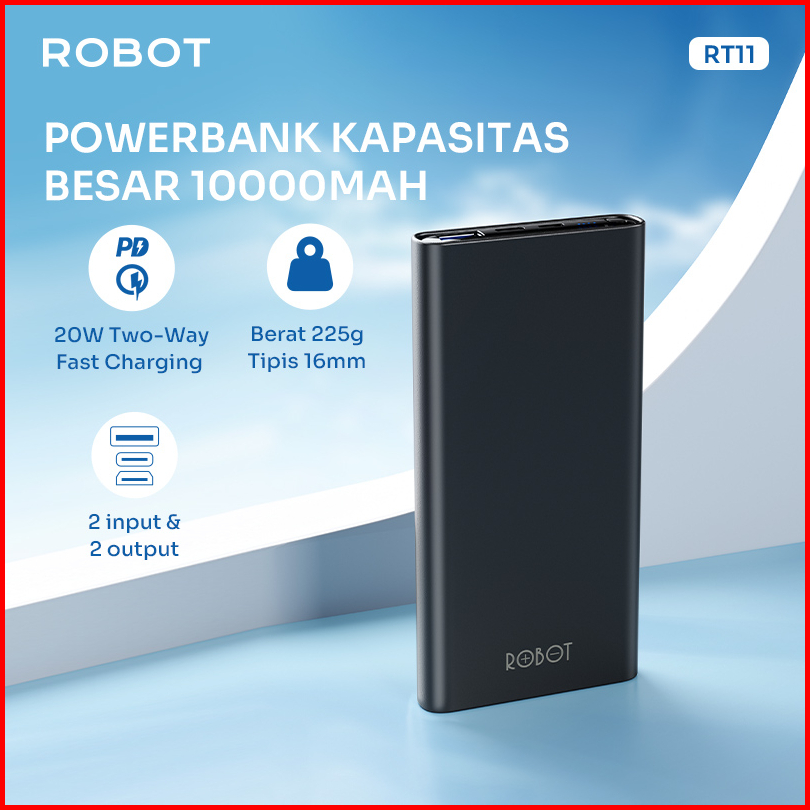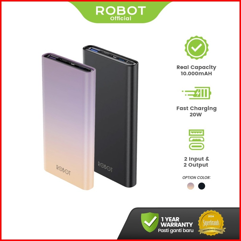 Robot Powerbank 10000mah Dual Port 20w Pd Fast Charging Quick Charging 3.0 Power Bank Gradasi Rt11 Original - Garansi 1