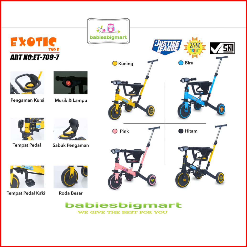 Balance Bike Exotic Et 709 -7 Et 714 Nuwa T32 Dorongan Atur Belok Stir 6 In 1 Sepeda Anak Roda Tiga