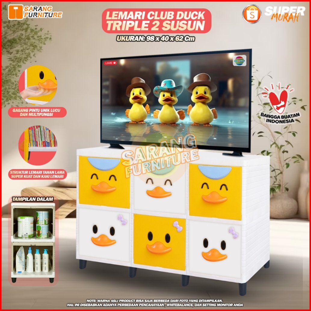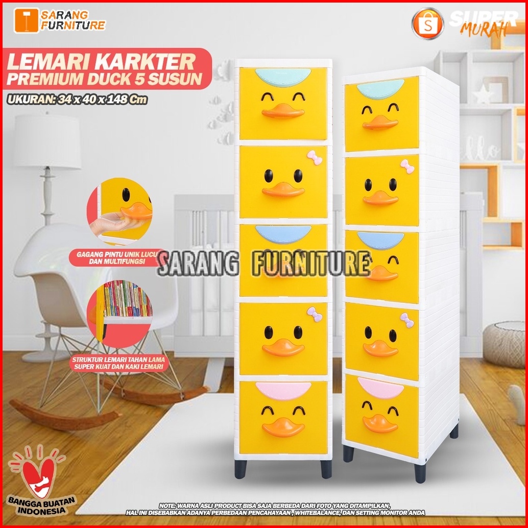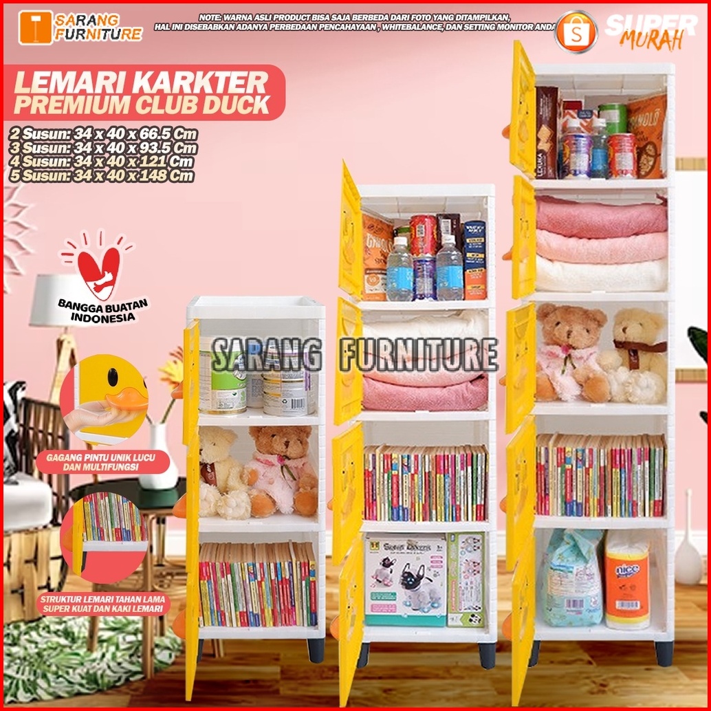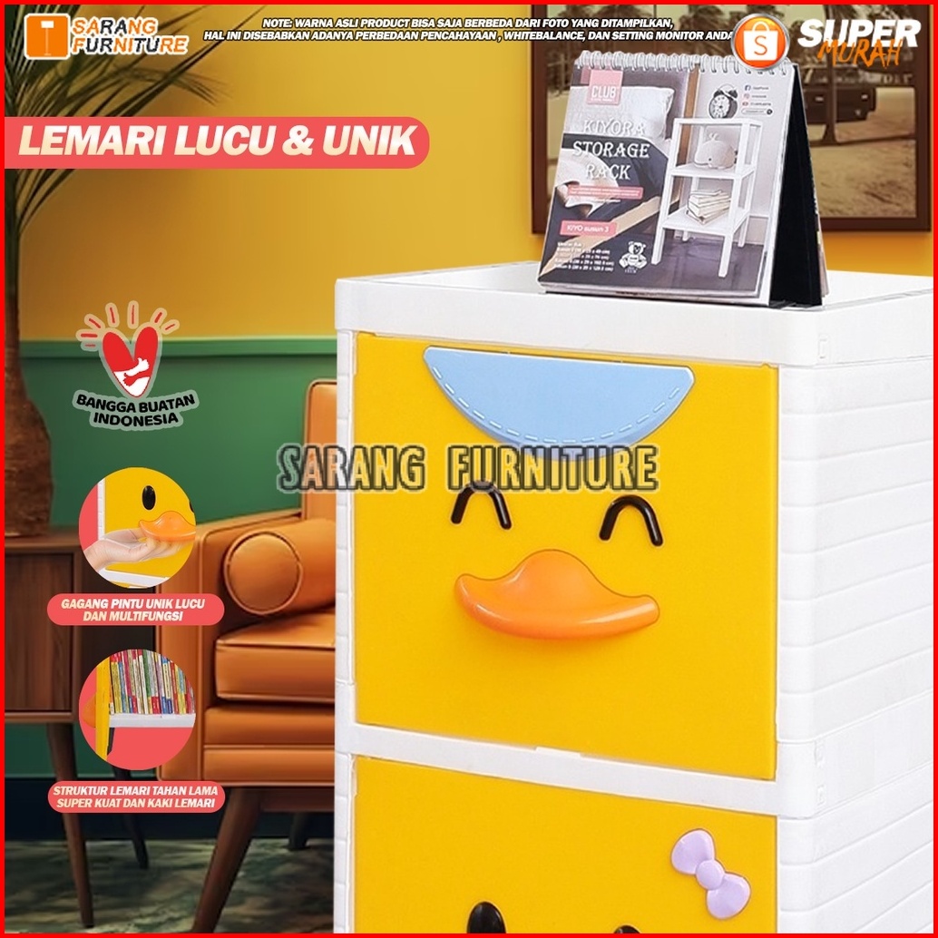 Lemari Pakaian Plastik Club Alfa Duck Cad Laci Susun 2 3 4 5 Pintu Boneka Kuning Putih Bebek Printing Lemari Bebek