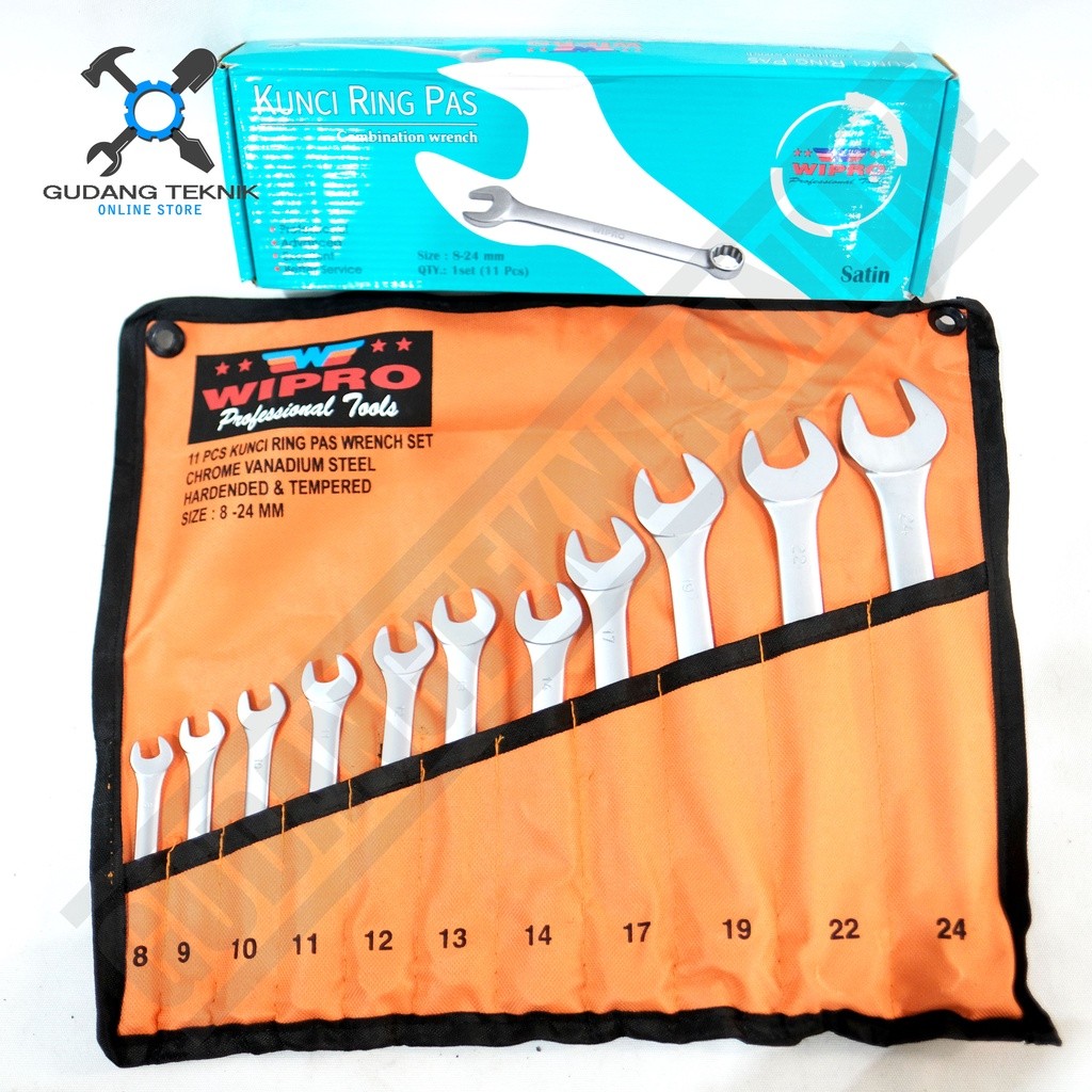 Kunci Ring Pas SET 11pcs 8-24mm WIPRO / Kunci Ring Pas 11 pcs Set 8-24 mm - Combination Wrench Set WIPRO Kunci PAS-RING