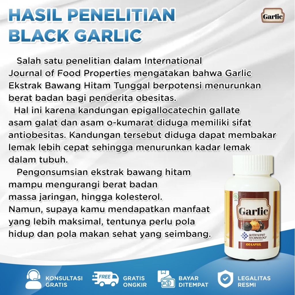 Penurun Berat Badan Obat Pelangsing Alami Obesitas Herbal Black Garlic Ekstrak Bawang Hitang Tunggal