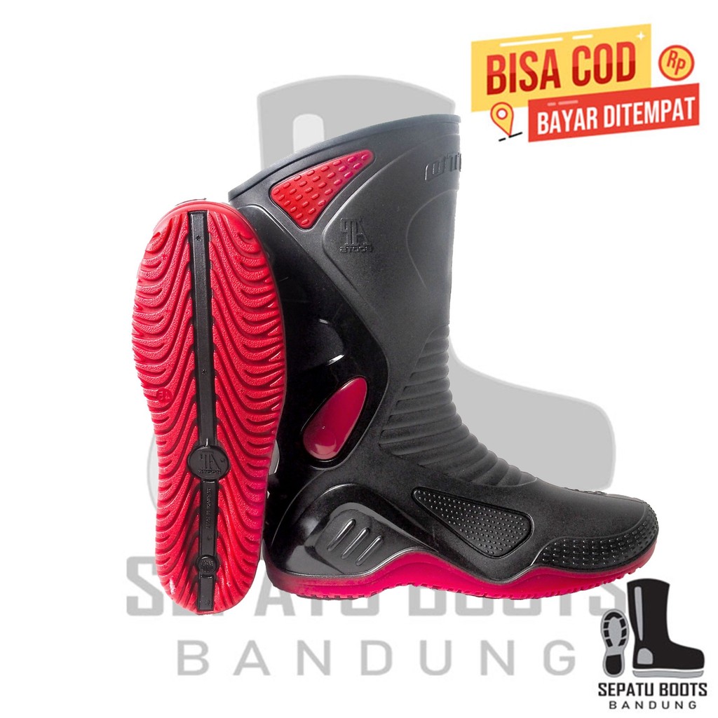 Sepatu Boot Tinggi AP MOTO 2 AP Boots Hitam Merah Karet Lokal Anti Air & Slip Sepeda Motor